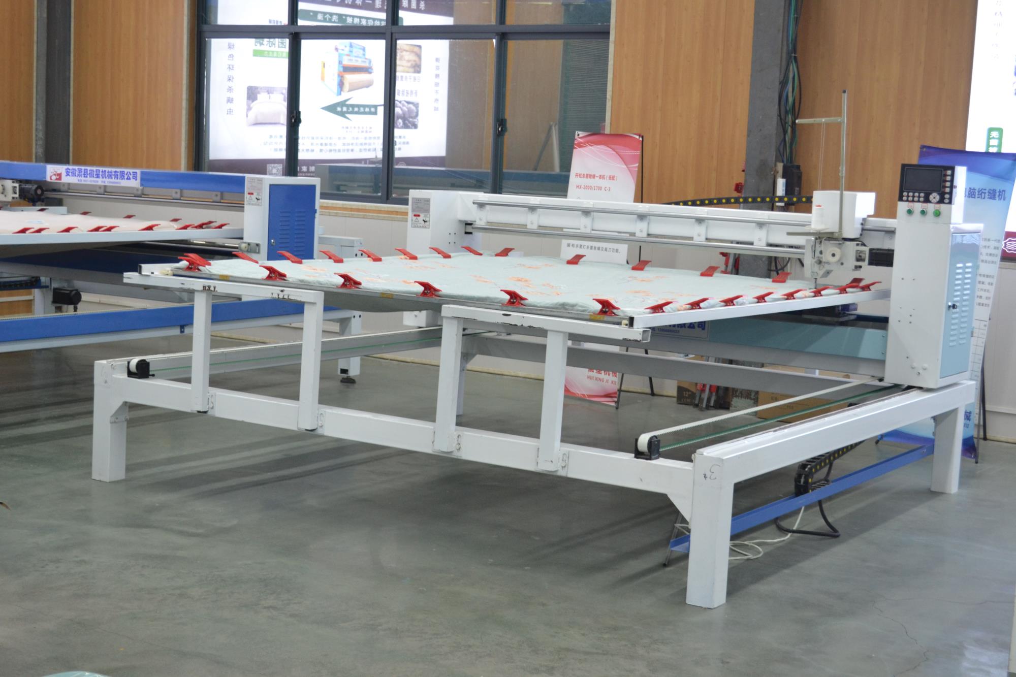整機運行穩定,噪音小,傳動結構壽命長,斷線檢查,面線段線自動停機,工作燈,穿線更方便,絎縫精度高,噪音接近無聲,液晶顯示器,小控制柜,占地??;配備新一代絎縫機專用電腦,內部實時檢測,確保不拉壞被子,電腦、電機出現故障自動停機,同時電腦畫面顯示故障內容,同時自帶幾百種常用花型。